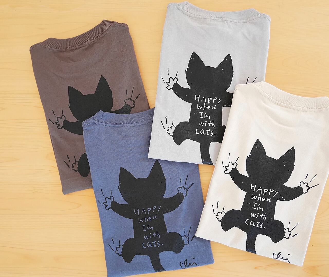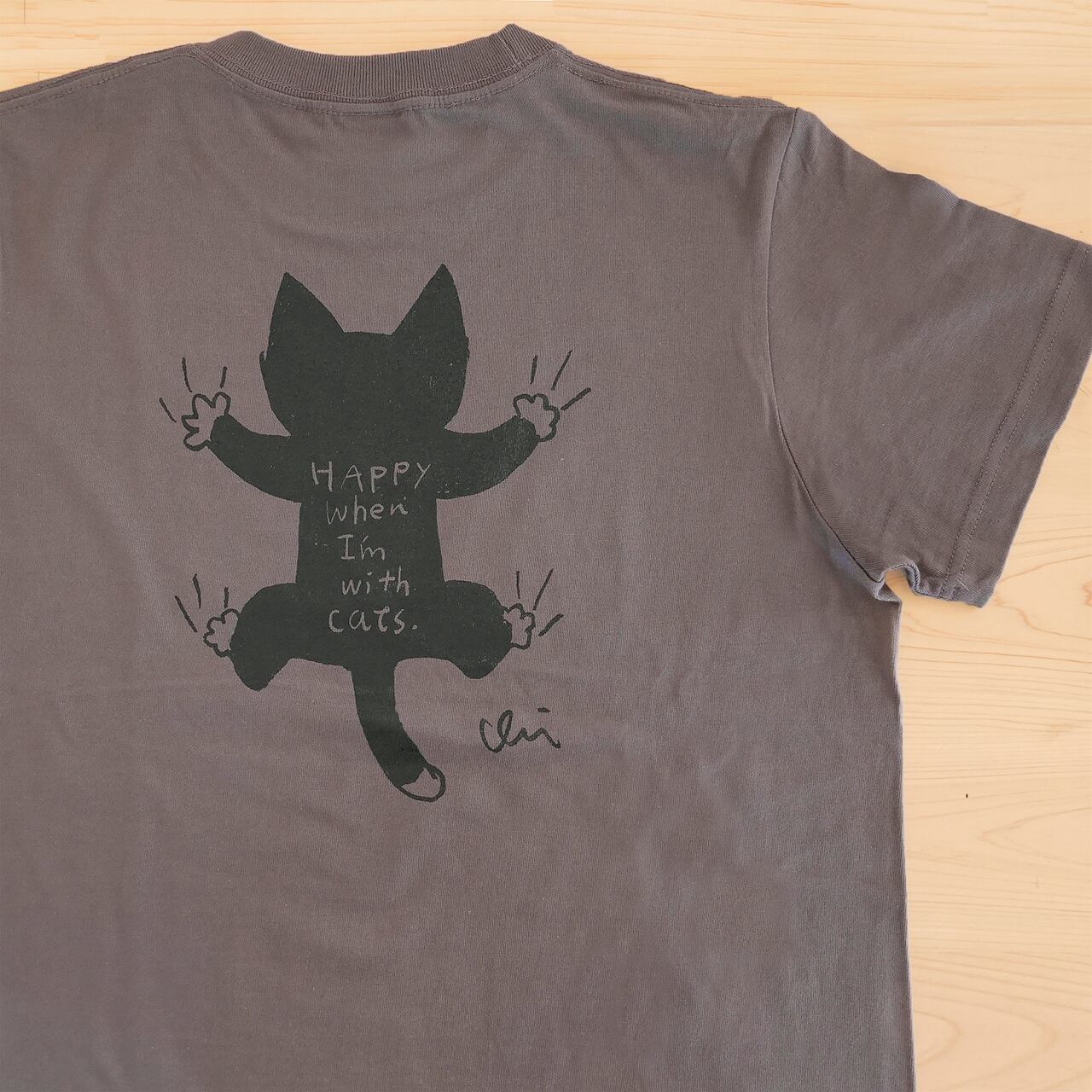 Tシャツ Clinging Cat「せなかねこ」バックプリント:チャコール