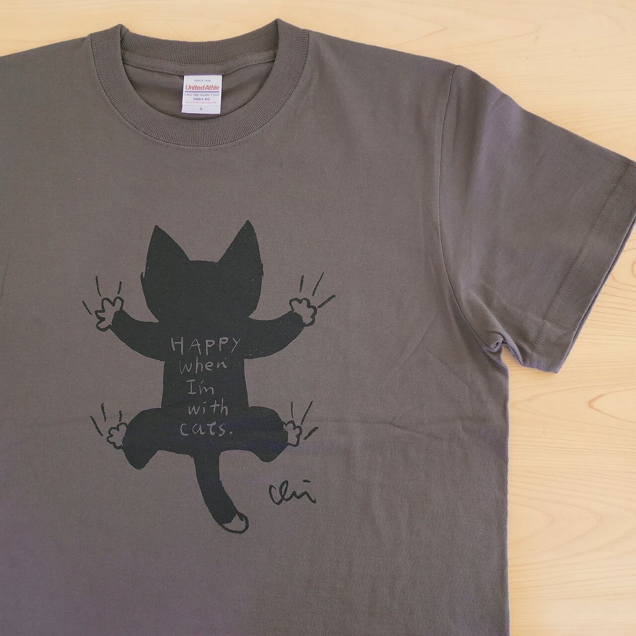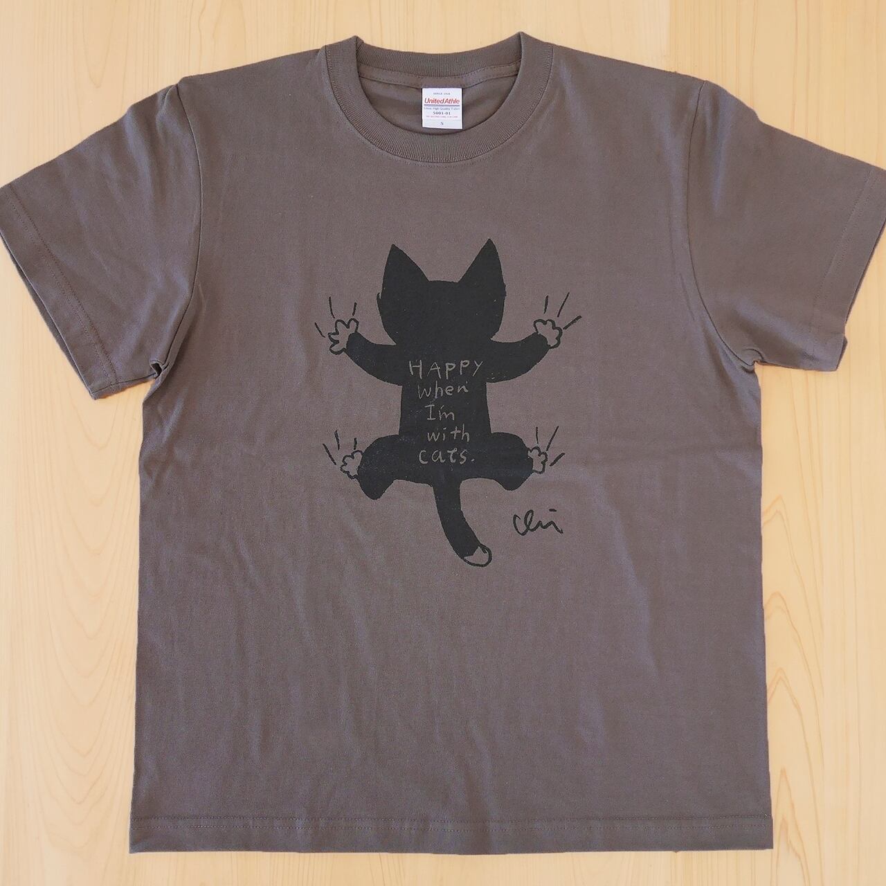 Tシャツ Clinging Cat「せなかねこ」フロントプリント:チャコール