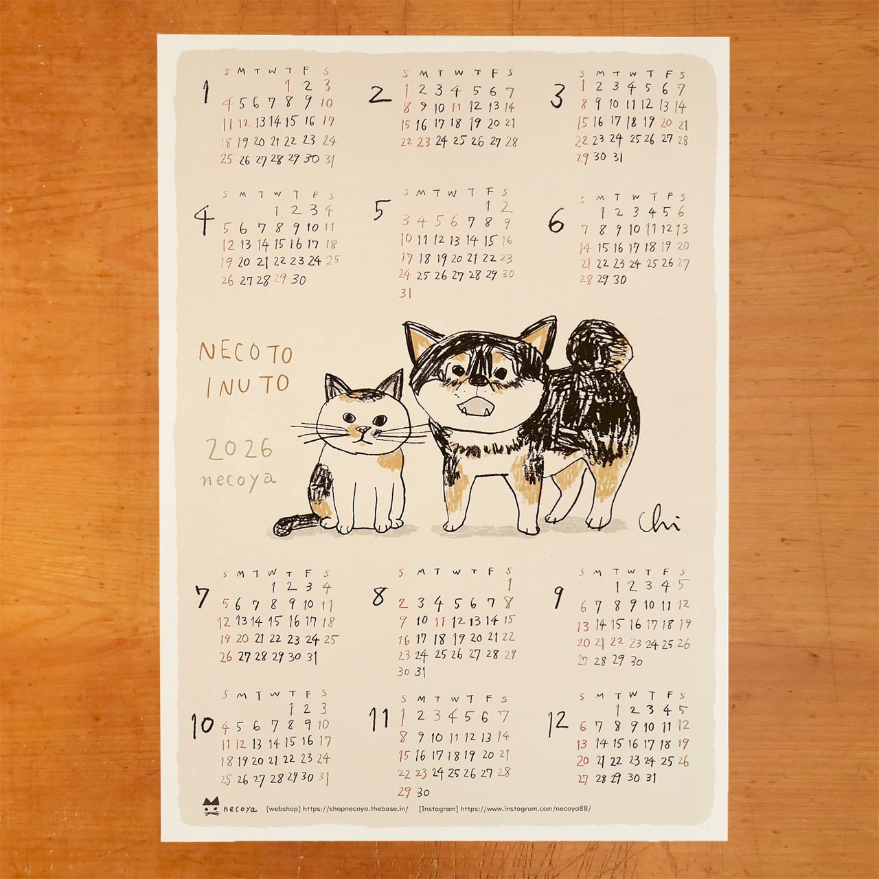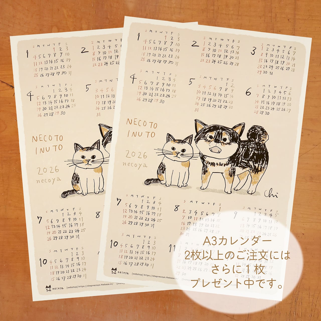 2026ねこといぬ A3カレンダー2枚セット