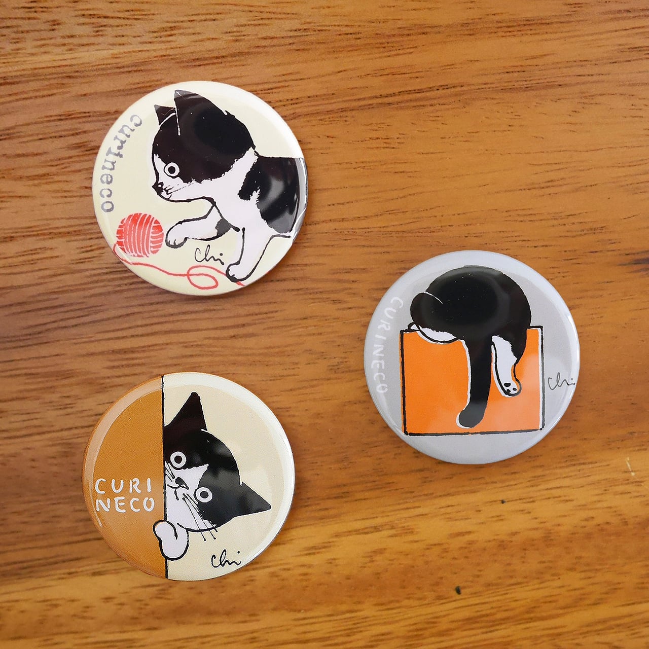 necoyaのオリジナルキャラクター 「くりねこ」をモチーフにした マグネットです。 「毛糸」「ひょっこりねこ」「しっぽ」の 3柄のセットです。 サイズ:直径32㎜ 他の柄のマグネットセットもあります。