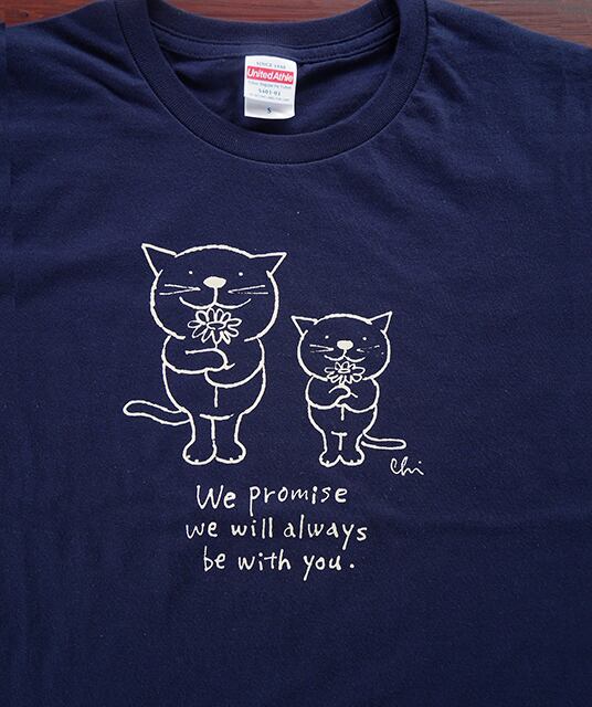 にゃんきーとすTシャツ「フラワー」ネイビー