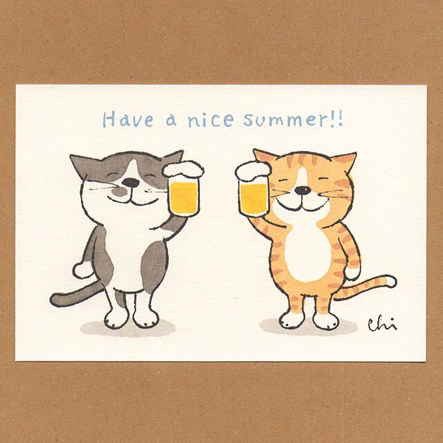 にゃんきーとすポストカード 乾杯B ¥130 size...100×148mm 用紙…竹はだ 180k 誠に勝手ながらお買物は合計金額1000円以上でお願いいたします。 送料は1回のお買物カートごとに350円(ゆうメールの場合)加算されます。 その他、ゆうメールで送れない場合は実費をいただきます。 ご不明な点はCONTACTよりお問い合せください。