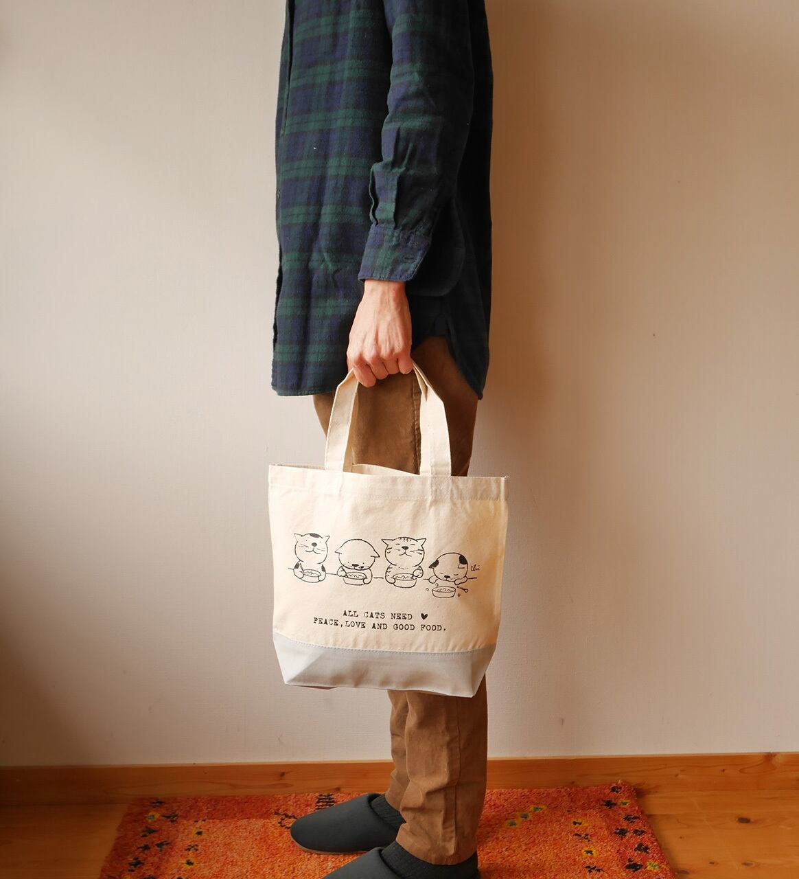 トートバッグ[にゃんきーとす・ごはん]S ナチュラル×グレー