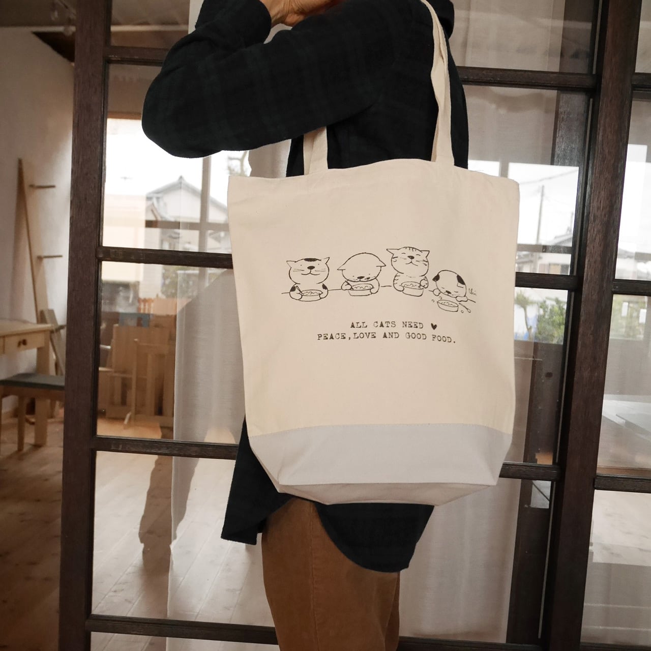 トートバッグ[にゃんきーとす・ごはん]M ナチュラル×グレー