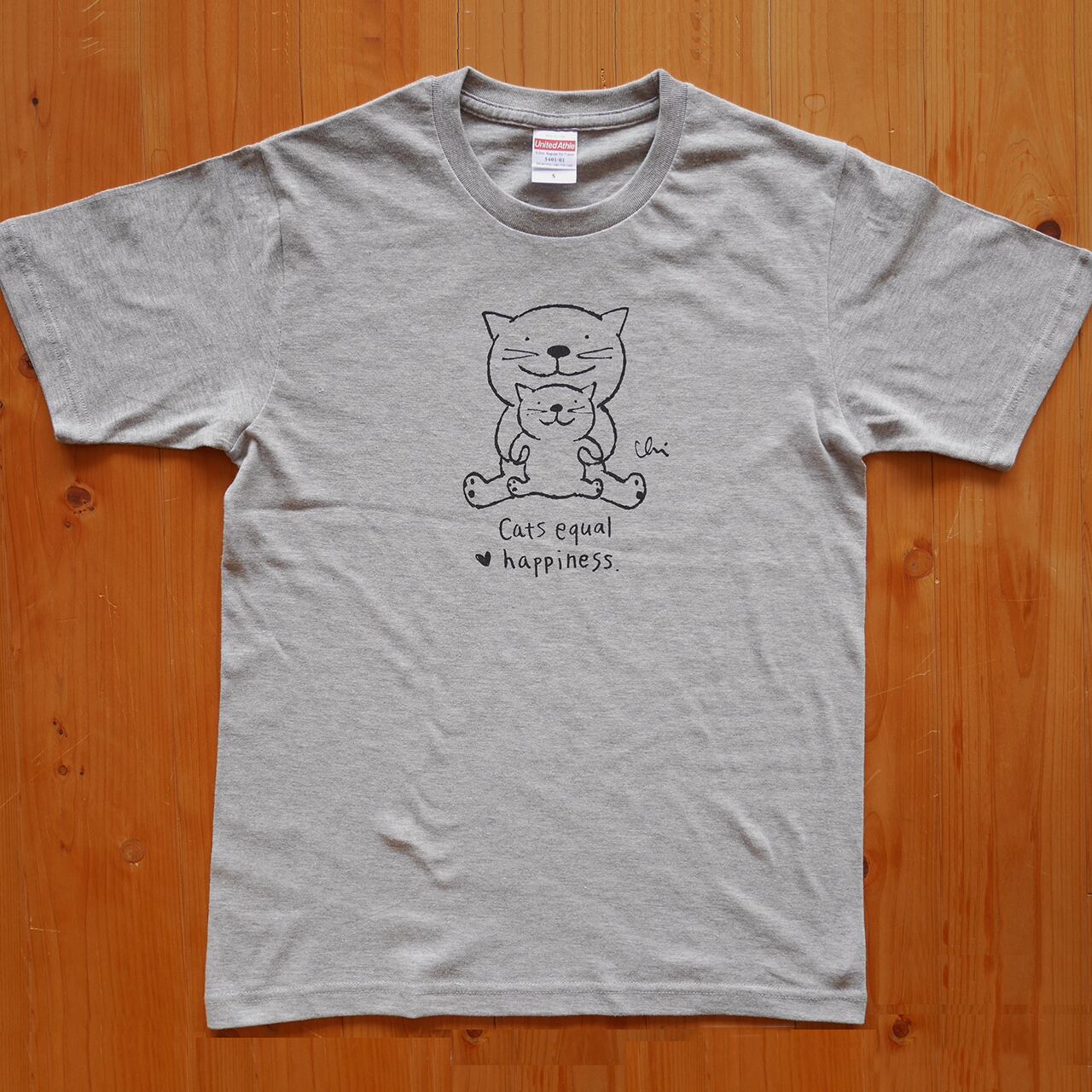 にゃんきーとすTシャツ「おやこねこ」ミックスグレー