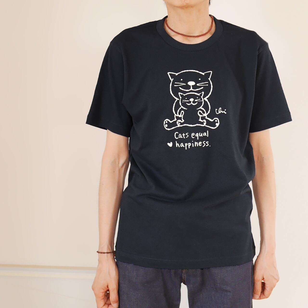 にゃんきーとすTシャツ「おやこねこ」ブラック Mサイズ