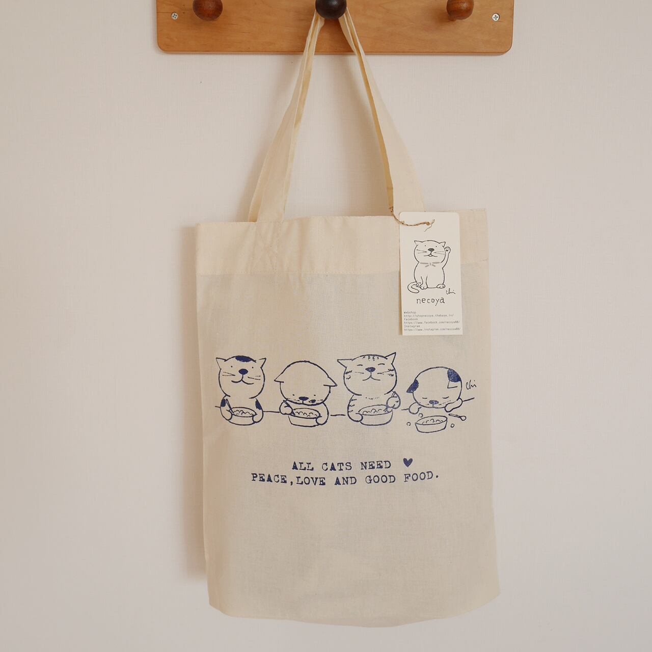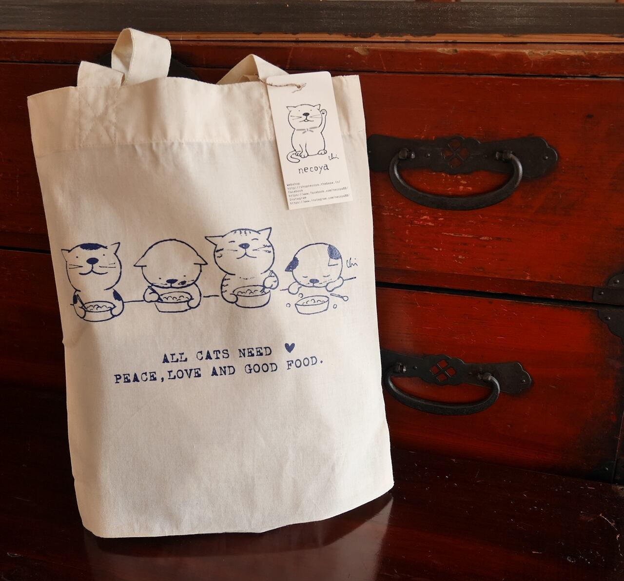 薄手マチつきコットンバッグ[にゃんきーとす・ごはん]