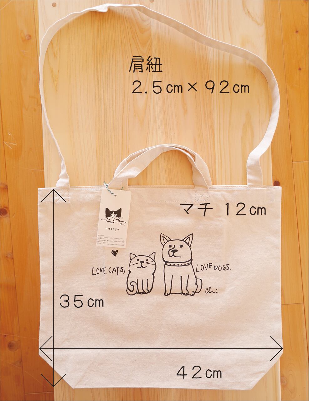 2wayトートバッグ [Love cats, Love dogs.1]ナチュラルM