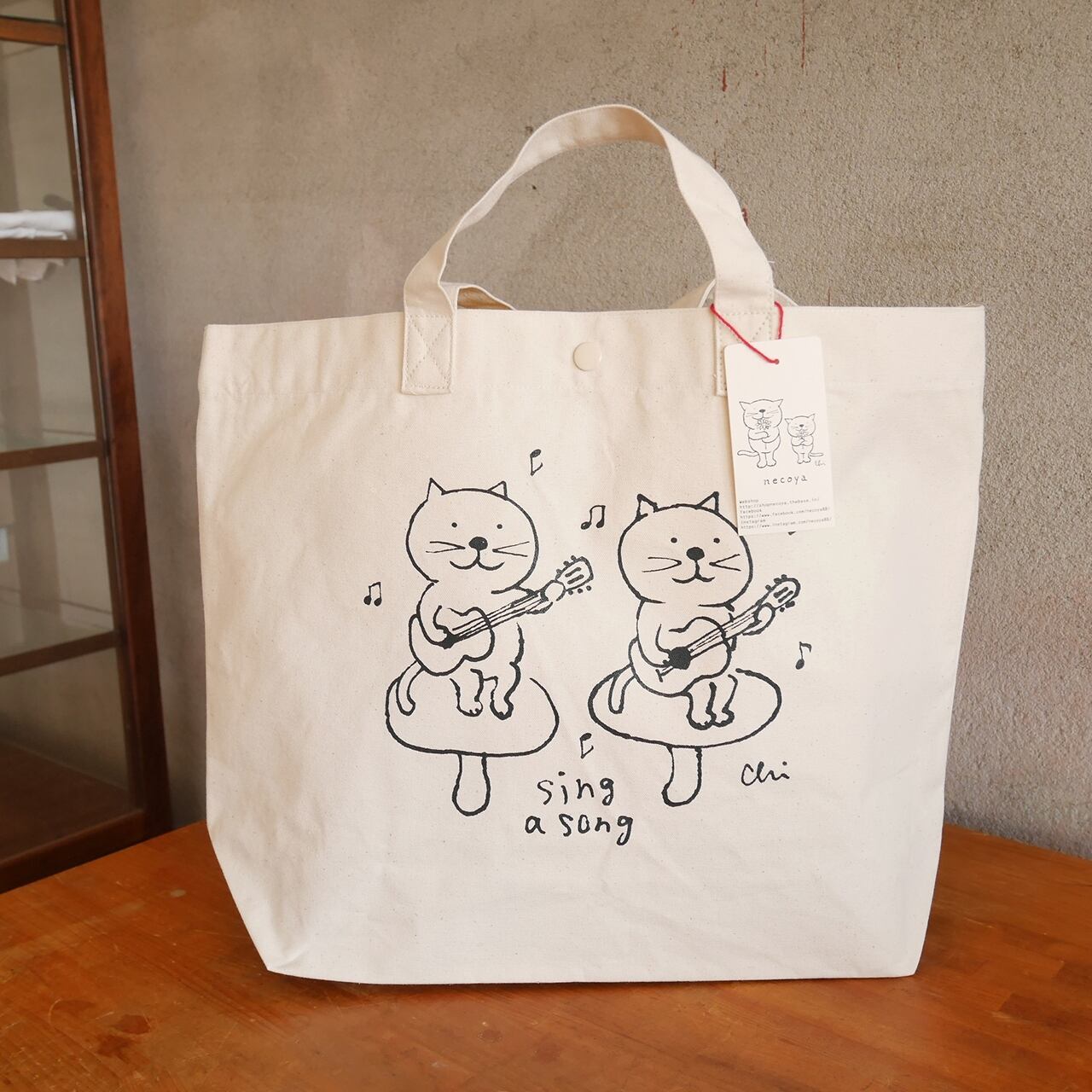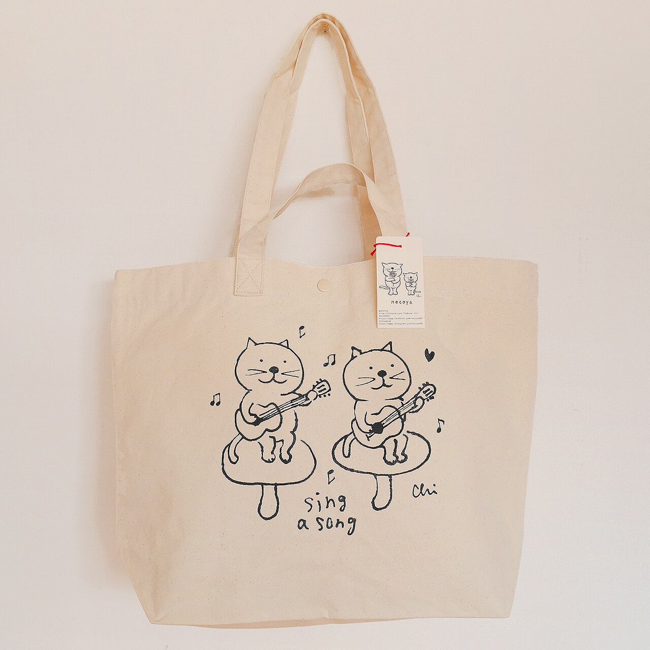 2wayトートバッグ [にゃんきーとす・きのこズ]ナチュラルLサイズ