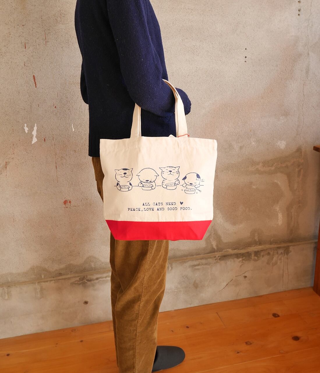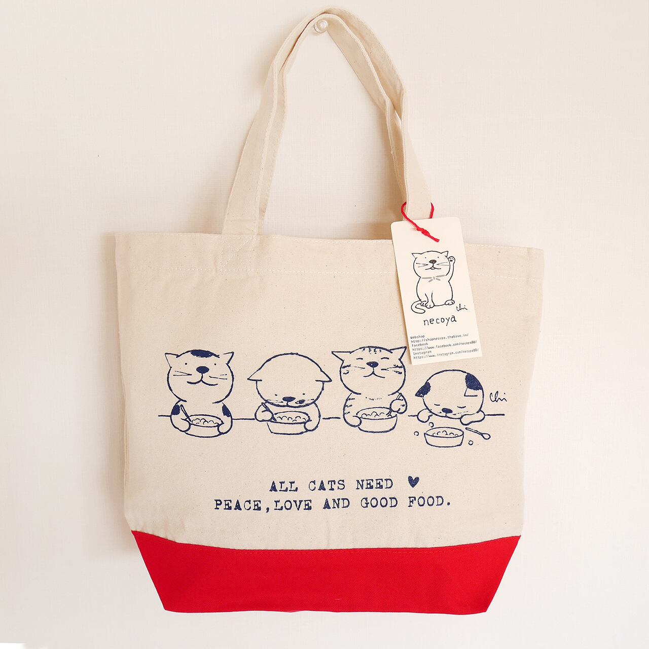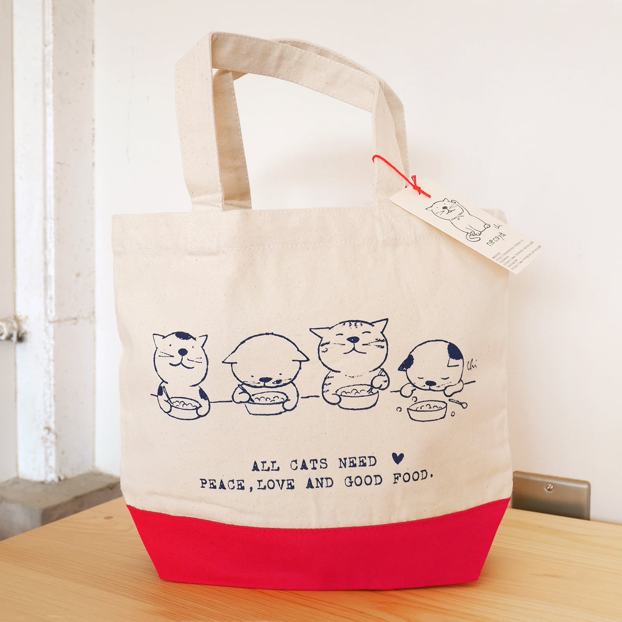 トートバッグ[にゃんきーとす・ごはん]S ナチュラル×レッド