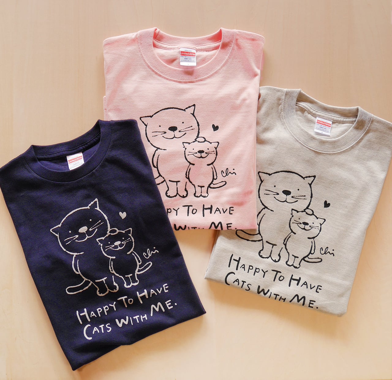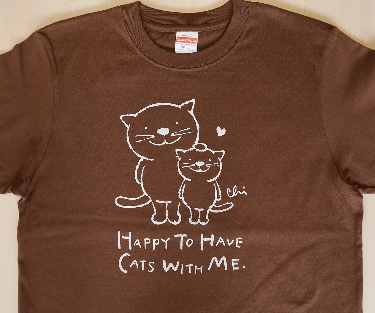 にゃんきーとすTシャツ「ねこがいてよかった」ダークブラウン×ライトグレーSサイズ