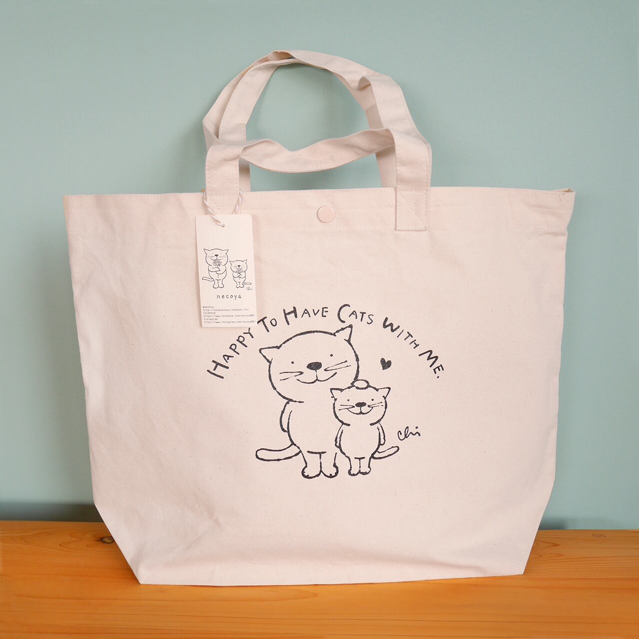 2wayトートバッグ[ねこがいてよかった] ナチュラル Lサイズ