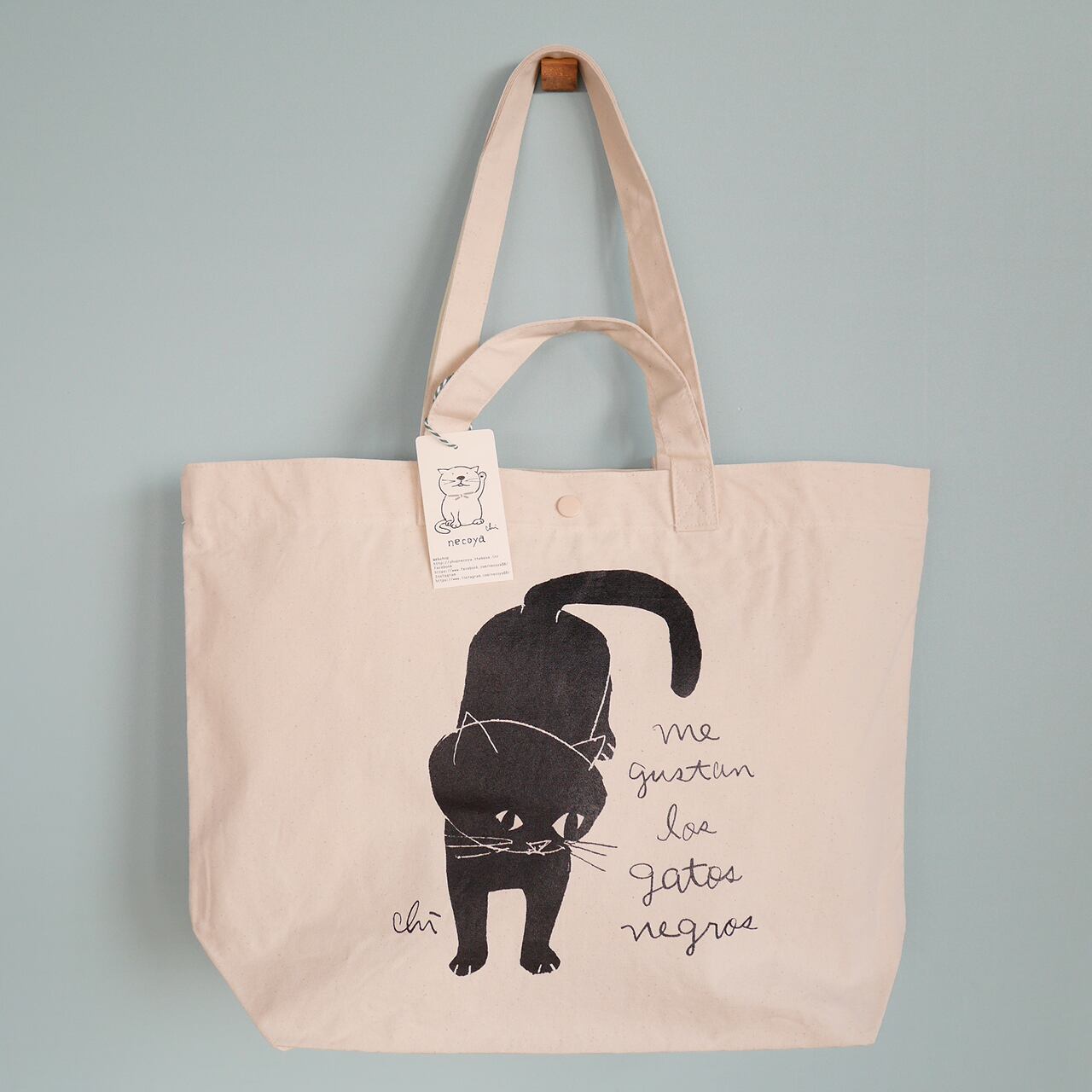 2wayトートバッグ[くろねこ] ナチュラル Lサイズ