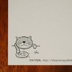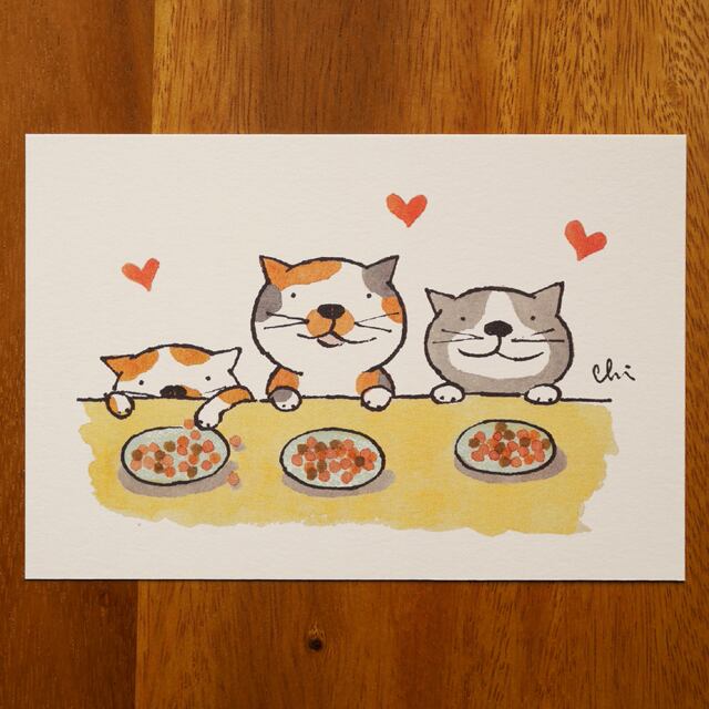 にゃんきーとすポストカード Love and food[NKPC-13] ¥130 size...100×148mm 用紙…竹はだ180k 誠に勝手ながらお買物は合計金額1000円以上でお願いいたします。 送料は1回のお買物カートごとに350円(ゆうメールの場合)加算されます。 その他、ゆうメールで送れない場合は実費をいただきます。 ご不明な点はCONTACTよりお問い合せください。