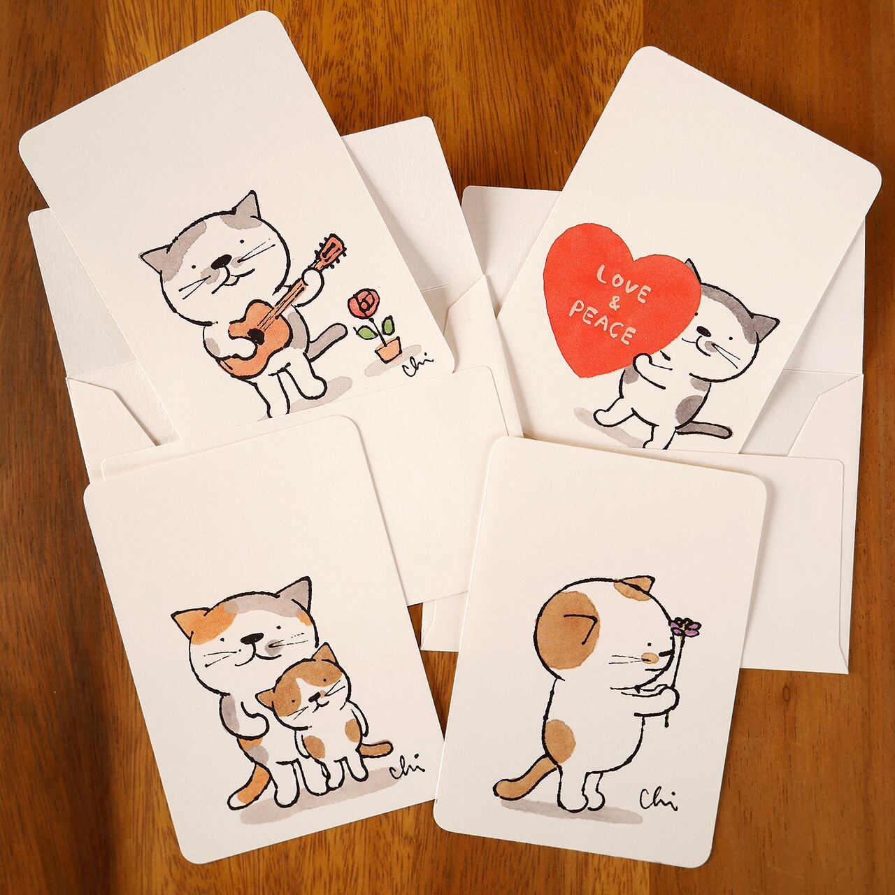 ミニカード4種各一枚とミニ封筒2枚のセットです。