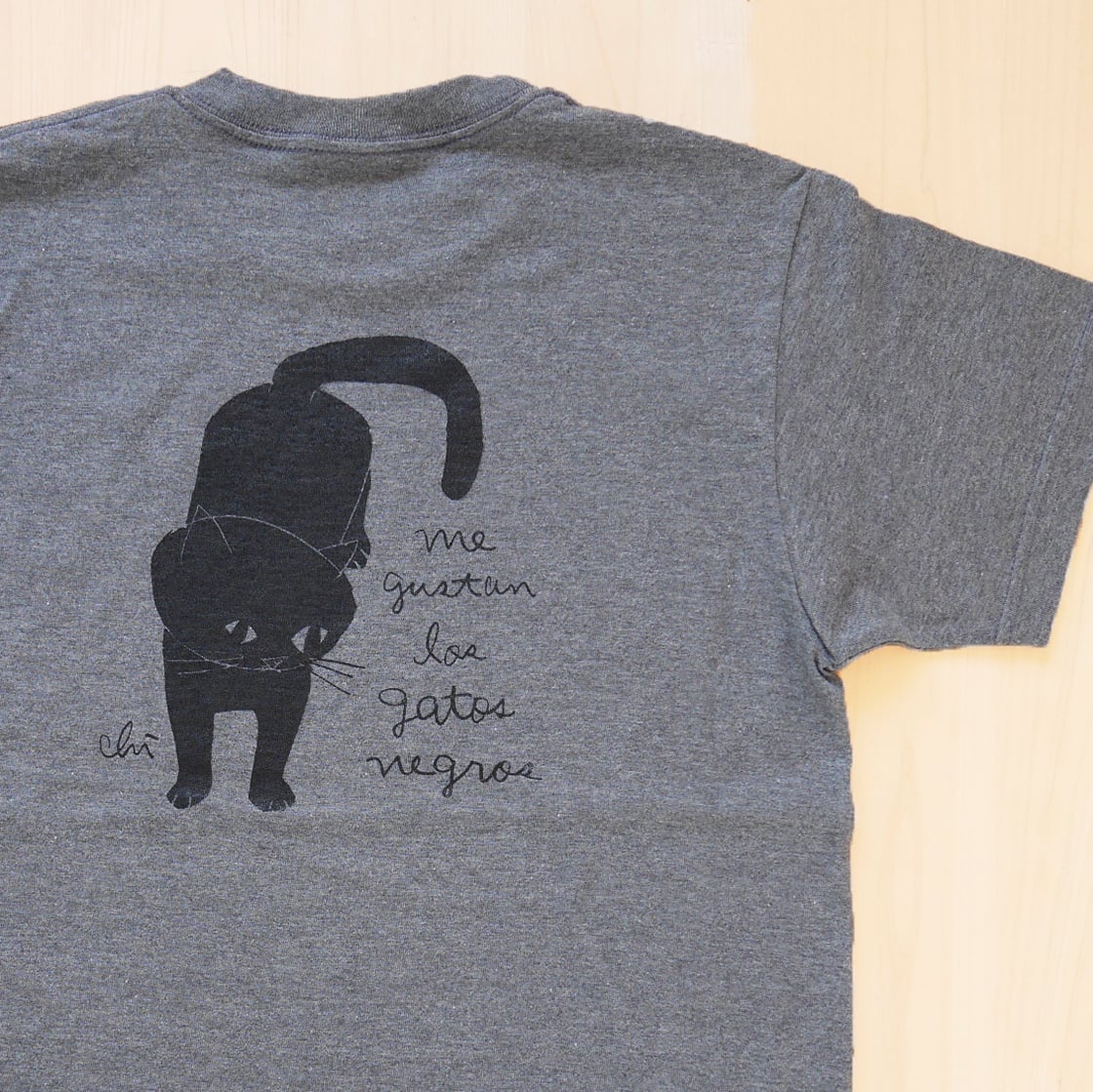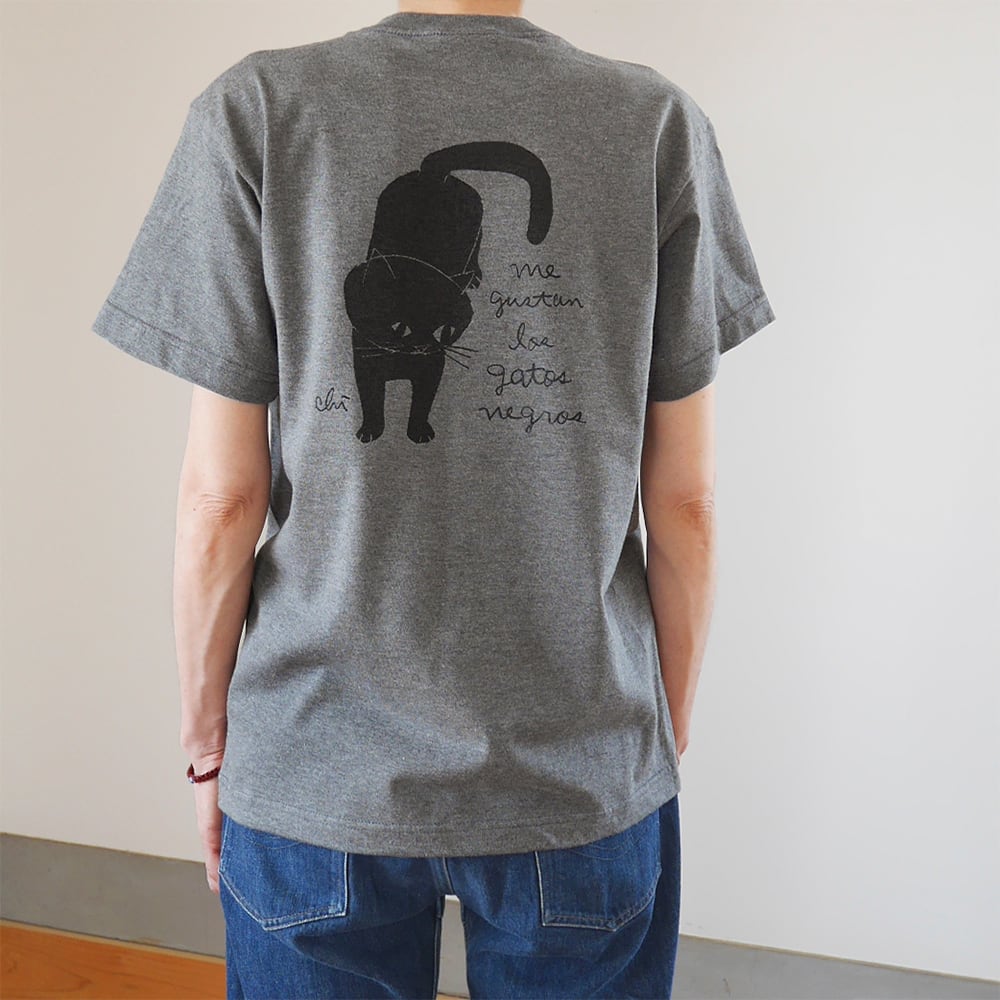 バックプリントTシャツ「黒猫」濃杢グレー(チャコール)