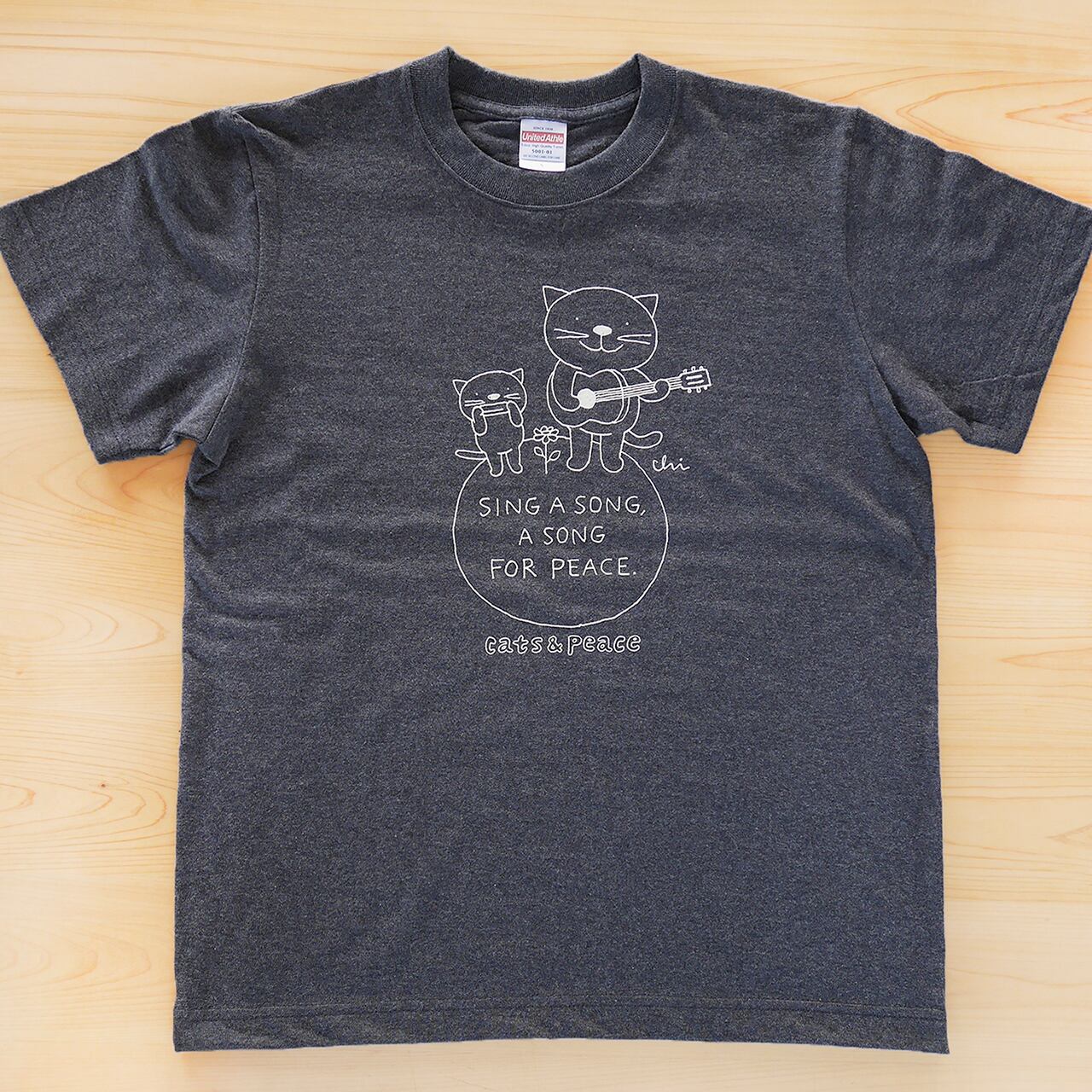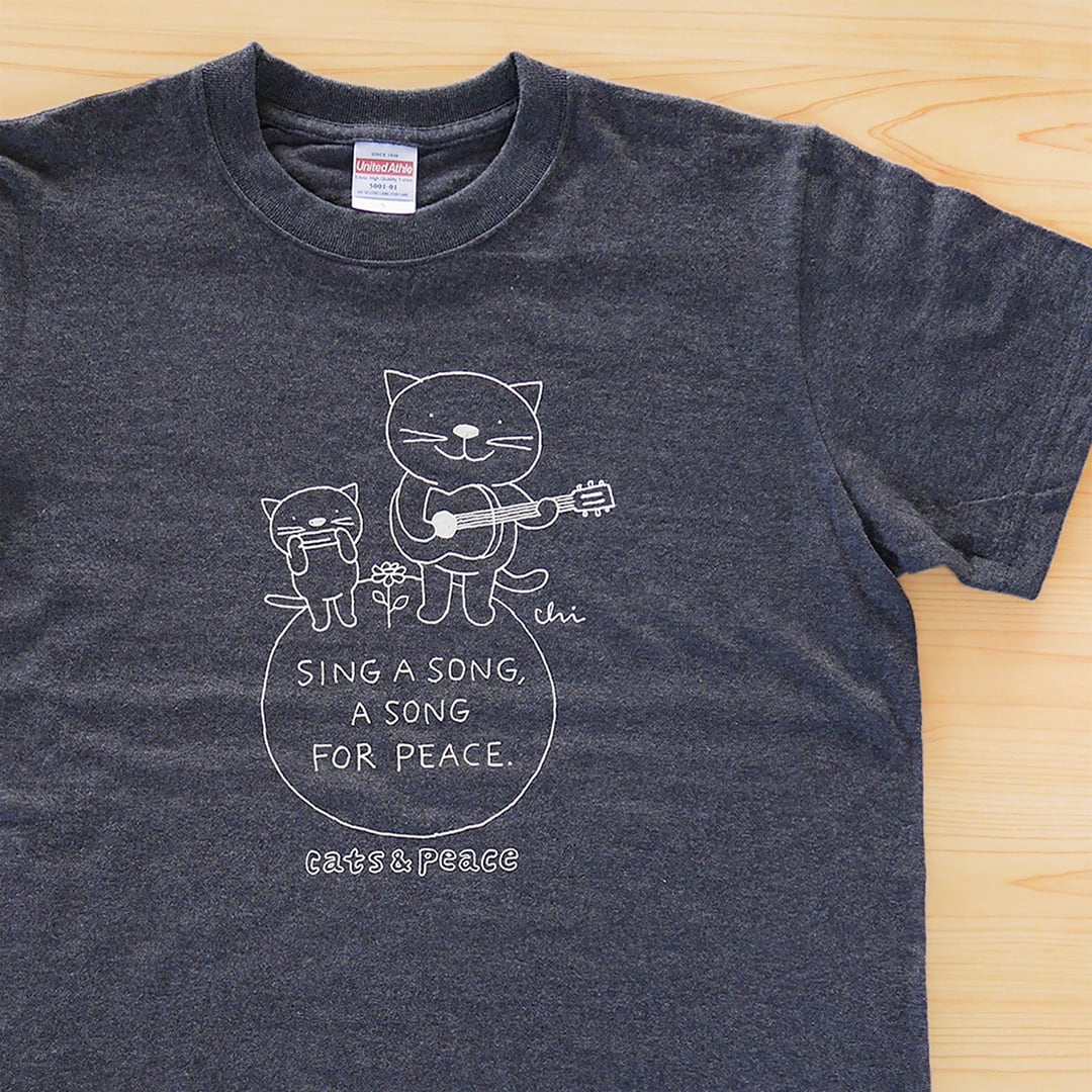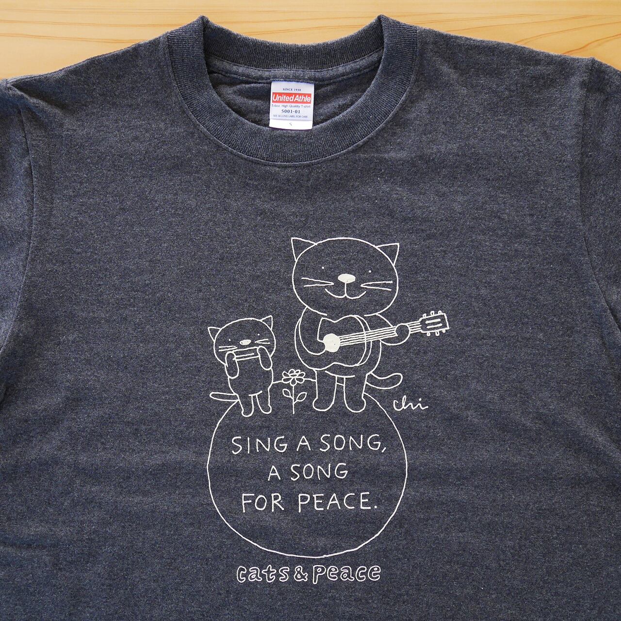 にゃんきーとすTシャツ「ピースソング」ダークヘザーネイビー
