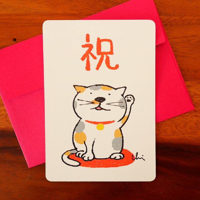 グリーティングカード[招きねこ・お祝い]封筒付き(GTC-S1) ¥180 size...100×148mm 用紙 竹はだ180k 封筒 コットンペーパー赤 誠に勝手ながらお買物は合計金額1000円以上でお願いいたします。 送料は1回のお買物カートごとに350円(ゆうメールの場合)加算されます。 その他、ゆうメールで送れない場合は実費をいただきます。 ご不明な点はCONTACTよりお問い合せください。