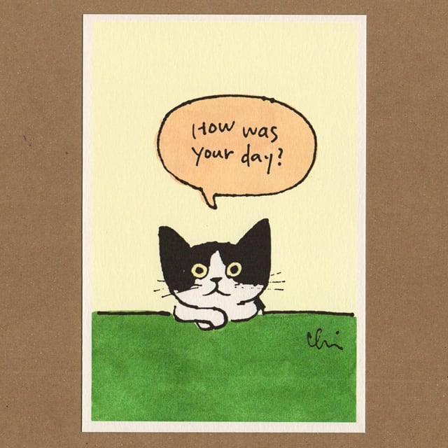 くりねこポストカード [今日どうだった?] ¥130 size...100×148mm 用紙…竹はだ 180k 誠に勝手ながらお買物は合計金額1000円以上でお願いいたします。 送料は1回のお買物カートごとに350円(ゆうメールの場合)加算されます。 その他、ゆうメールで送れない場合は実費をいただきます。 ご不明な点はCONTACTよりお問い合せください。